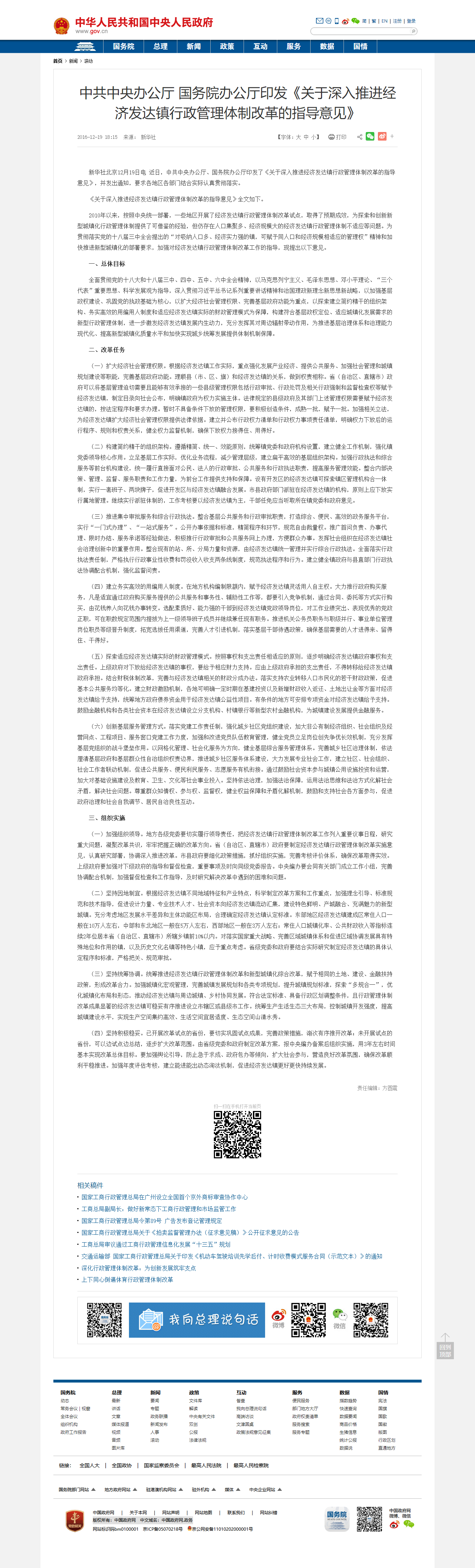 《關(guān)于深入推進(jìn)經(jīng)濟(jì)發(fā)達(dá)鎮(zhèn)行政管理體制改革的指導(dǎo)意見》